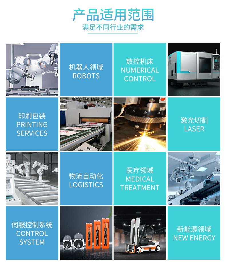应用设备: 医疗器械、物流输送、工业机器人、自动化装配、自动化生产线、新能源叉车、履带机器人、AGV搬运车