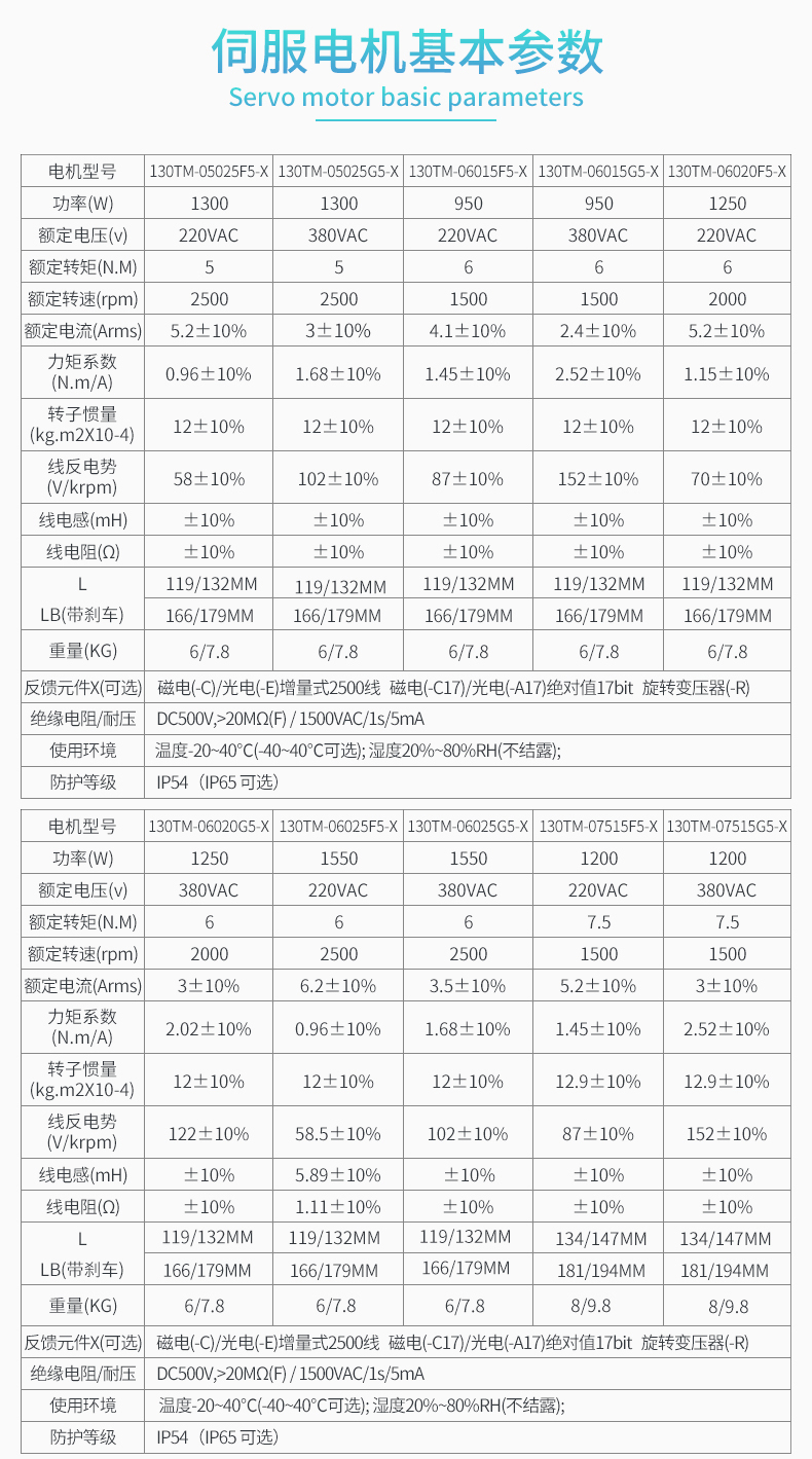 *电机种类多样(1050~4000W,110VAC,220VAC,380VAC,带制动器,油封等)