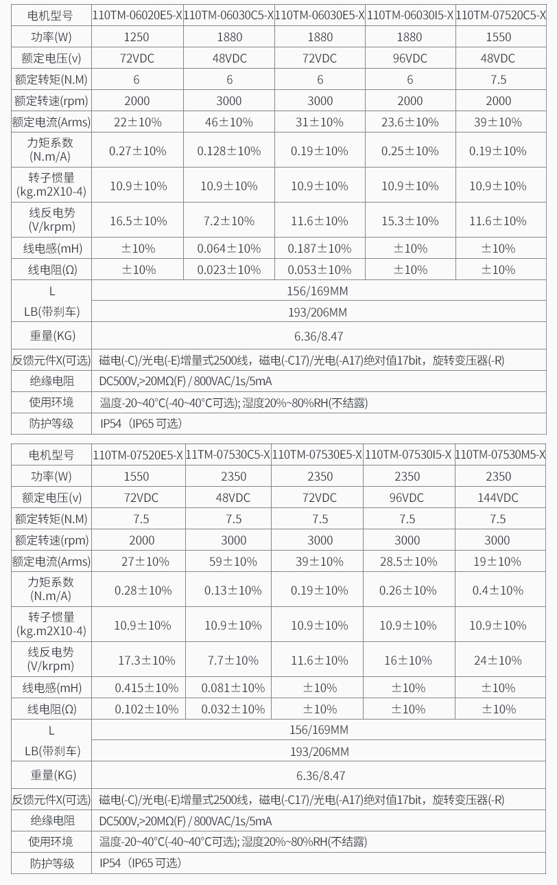 *电机种类多样(1050~2350W,DC24~144V,带制动器,油封等)